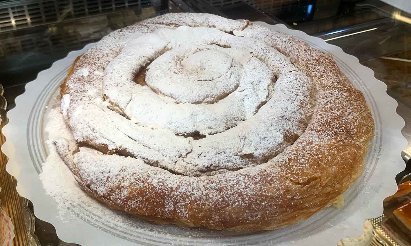 Formatting process: the sheet of dough is rolled onto itself and then formed into a spiral of two or more clockwise turns.