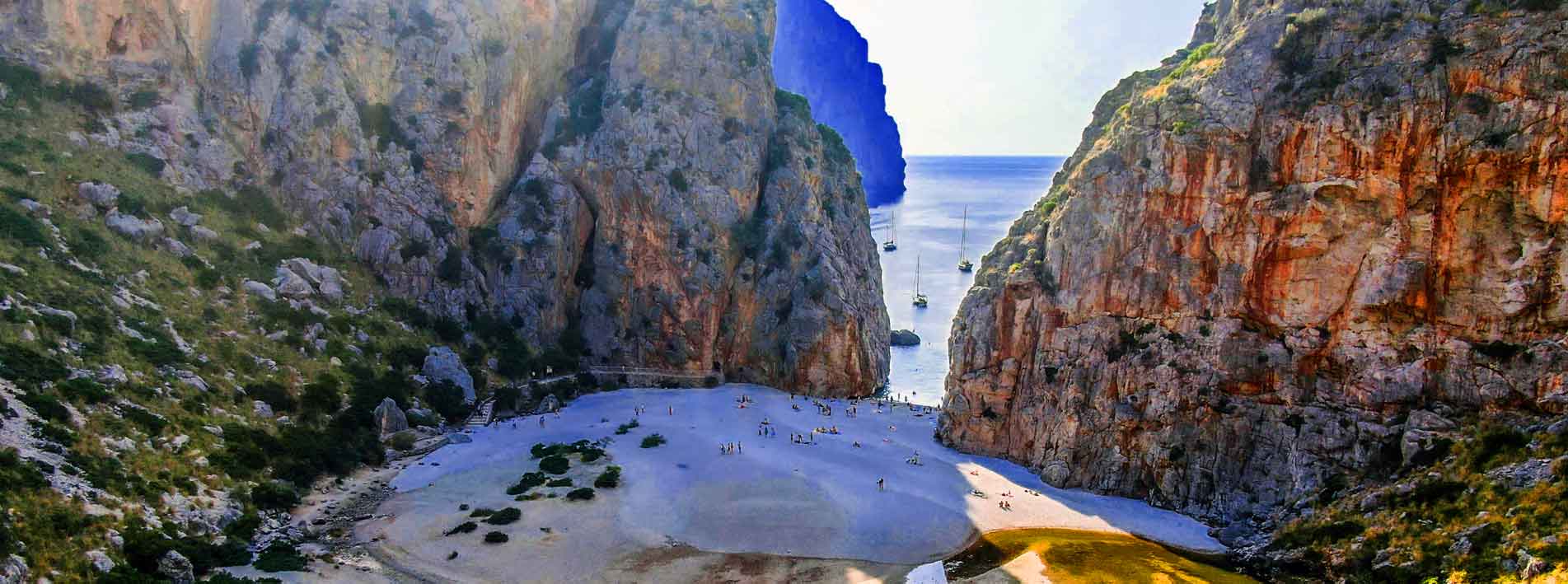 Torrent de Pareis: Un cañón natural de impresionante belleza al que se accede a través de la carretera de Sa Calobra o por mar, desembocando en una pequeña playa.